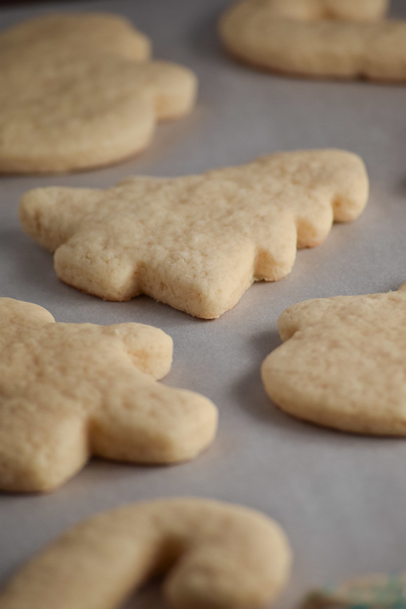 - Roll out cookies to 1/4" thick and cut out with desired shape.